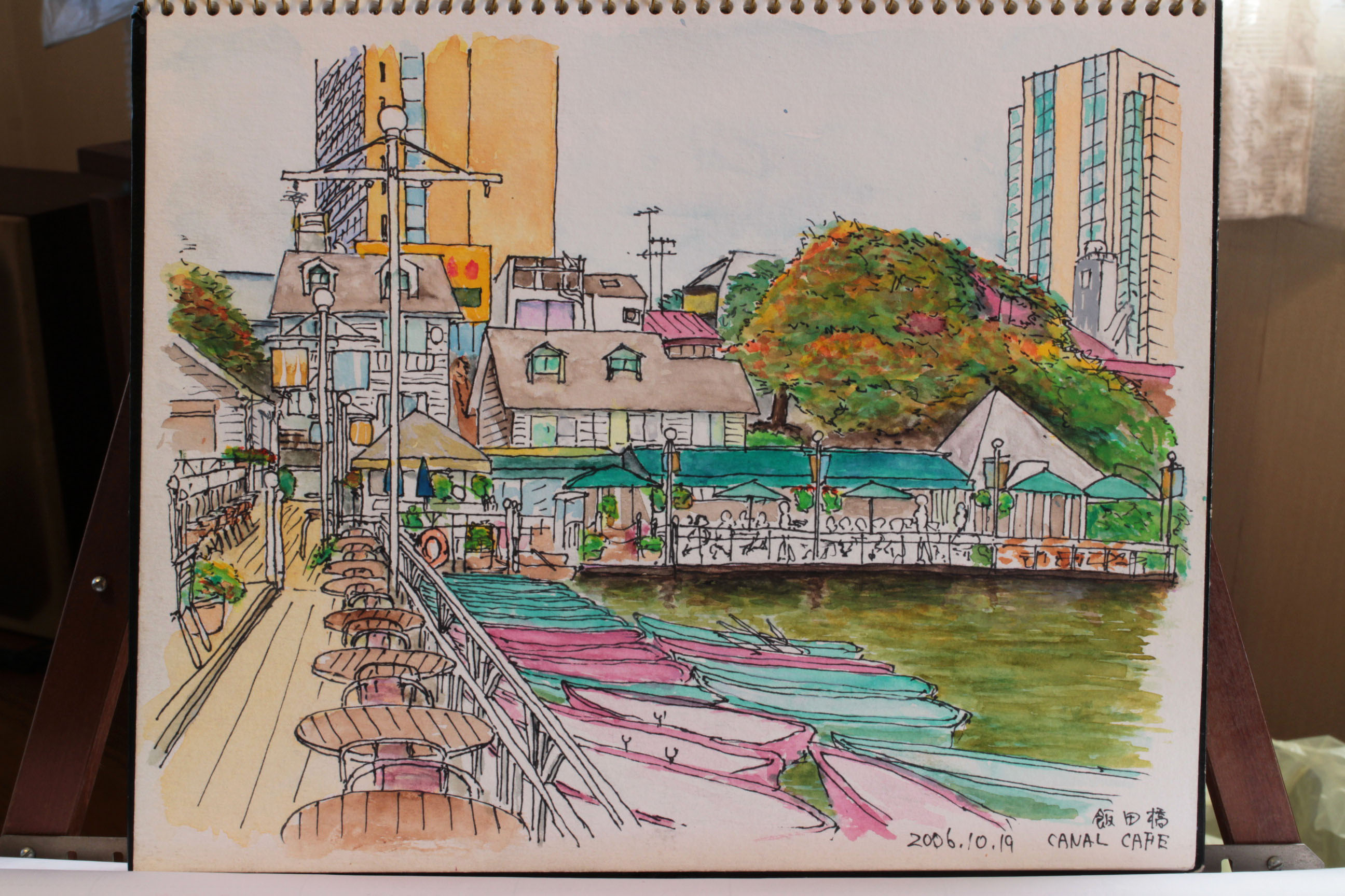 その話を持ちかけて来た頃、Sさんはそう言ってわたしを外へ連れ出すようになった。オフィスの前の道を飯田橋駅のほうへ行くと、その道がはすかいに交差する早稲田通りに出る。彼は駅の西口を素通りして牛込橋を渡り、左に曲がって外堀通りの歩道に出ると、少し歩いて左の階段を下りていった。ただあとをついていったわたしは、外濠に面したオープンカフェの板張りのフロアに立っていた。橋沿いのウッドデッキと外濠沿いのウッドデッキとが直角に形作るそのフロアには、真っ白な丸テーブルと数脚の椅子が何組もところせましと配されていた。縁には桟橋然と手漕ぎボートも繋がれている。Sさんは、対岸の見附の緑が正面に眺められる、長いカウンターに沿った横並びの椅子のひとつにどすんと巨体を落ち着けると、一息ついて言った。