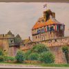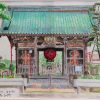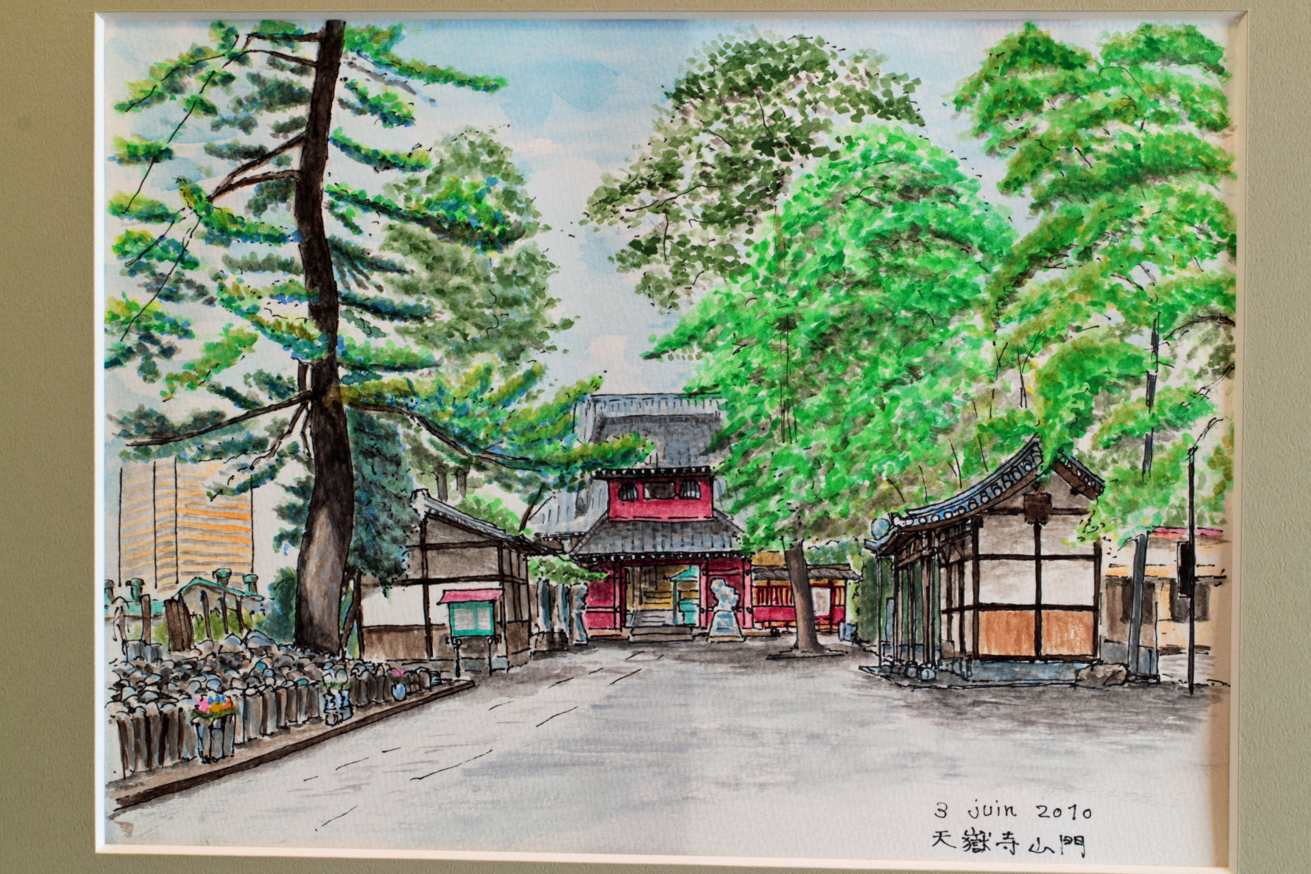鞠野さん宅と我が家とは、今でも家族ぐるみの付き合いだ。見るからにお硬い役人のご主人だったが、やくざな職人気質の私の父とはへんにウマが合ったようで、よく一緒に越谷市蒲生の「鳥よし」にタクシーを呼んでは呑みに行っていた。大学生の私を役所の職場仲間たちのスキーに誘ってくれたこともあるし、私のほうは息子さんの家庭教師をしていたこともある。これを描きながら、そんなあれこれの思い出に浸っていると、この絵の左側に並ぶ墓石の向こうから、ふとあの<よお>という手を上げて、その鞠野さんがいまにも姿を現すような気がした。