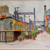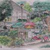 やがてクルマは通称「セザンヌの道」という勾配のきつい坂を駆け上り、いよいよそのバッテンポイントが間近になると、突然フロントガラス越しにこの絵の風景が眼前に大きく広がって私を釘付けにした。軽い脳震盪のような眩暈と興奮。一心不乱に画紙に絵筆を運び続けた。足元の畑を小さなカタツムリがびっしりと埋め尽くし、ゆっくりと貝殻を動かしながら光の乱舞に興じている。カッコウの声(フランスのカッコウは「カッコーカッコー」でなく、「ボンジュルボンジュル」と啼く)以外、人の姿も見えない。天気にも恵まれ、幸福な朝だった。昼前に下山し、連日通ったカフェで南仏の地酒パスティスとスパゲティのランチ。すると、昼頃から急に降り出し、午後はオラージュ(嵐)になった。